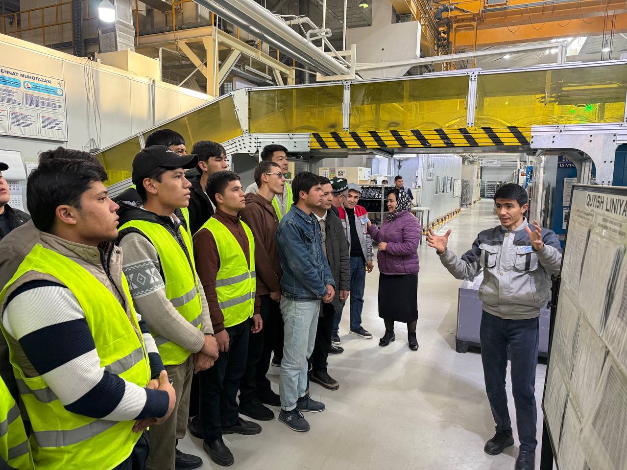 Tashrif davomida talabalar o‘zlarining savollari bilan chiqib, mutaxassislar bilan suhbatlashdi va ishlab chiqarish jarayonining amaliy jihatlarini chuqurroq tushunishga harakat qildilar. Bu tashrif talabalar uchun nafaqat nazariy bilimlarni mustahkamlash, balki texnika va texnologiya sohasidagi amaliy ko‘nikmalarni oshirish imkoniyatini yaratdi.
