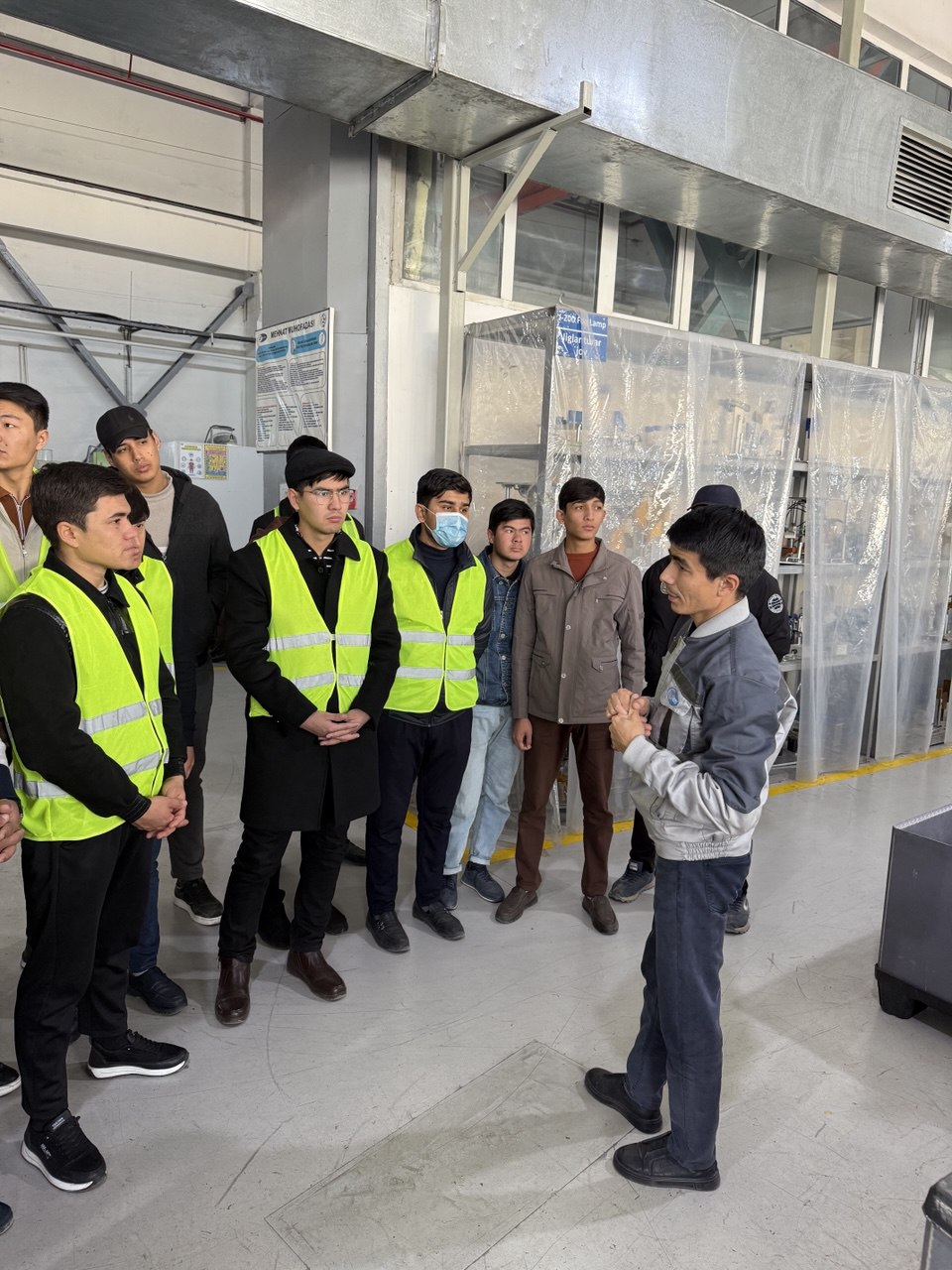 Tashrif jarayonida talabalar korxonada faoliyat yuritayotgan ishlab chiqarish tizimi, zamonaviy texnologik jarayonlar, texnika va uskunalarning ishlash prinsiplari, shuningdek, ishlab chiqarishni tashkil etish va boshqarish jarayonlari bilan batafsil tanishtirildi. Korxona mutaxassislari tomonidan ishlab chiqarishda qo‘llanilayotgan innovatsion yondashuvlar, mehnat muhofazasi va texnika xavfsizligi qoidalari hamda mahsulot sifatini ta’minlash mexanizmlari yuzasidan keng qamrovli ma’lumotlar berildi. Talabalar tomonidan bildirilgan savollarga amaliy misollar asosida tushuntirishlar berildi.